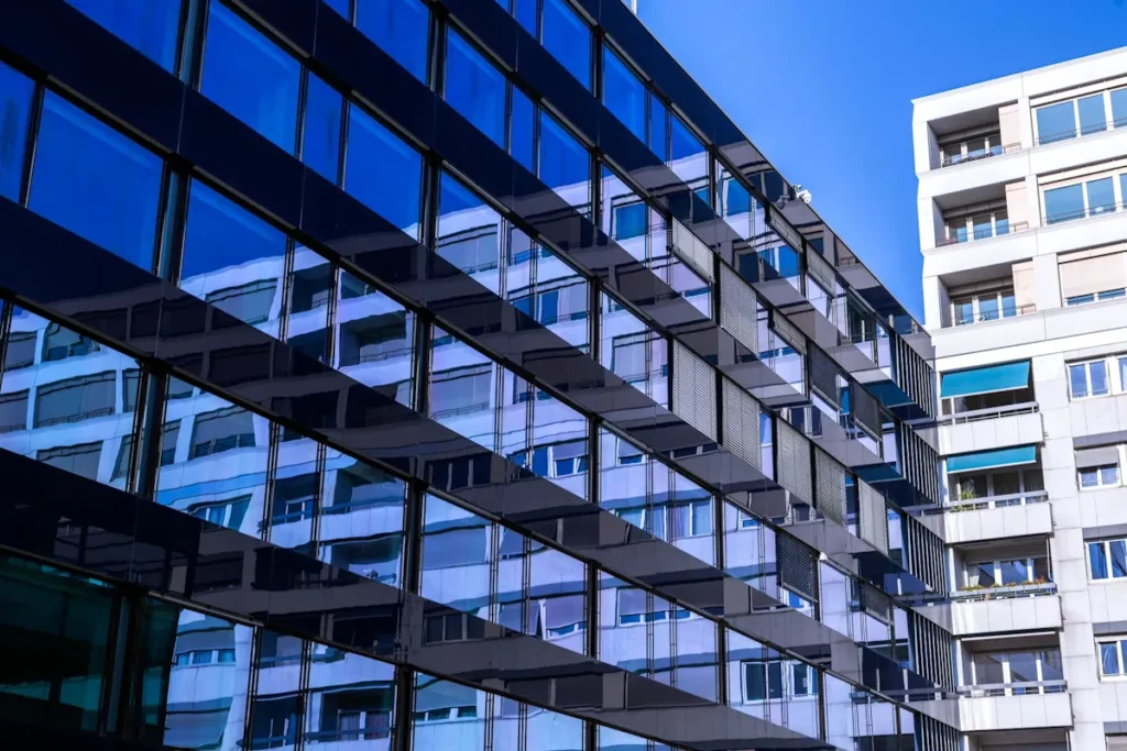 Le film miroir permet de créer un effet miroir parfait sur la face extérieure du vitrage alors que la transparence est maintenue sur sa face intérieure.